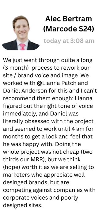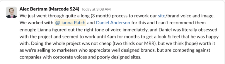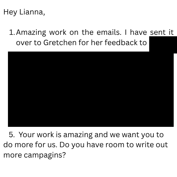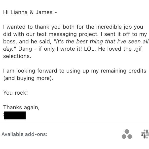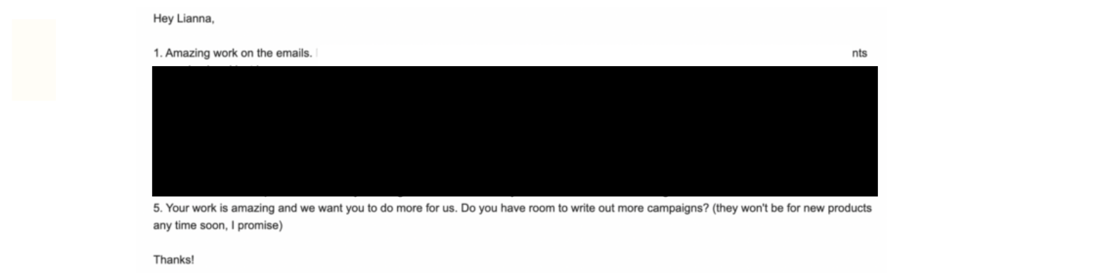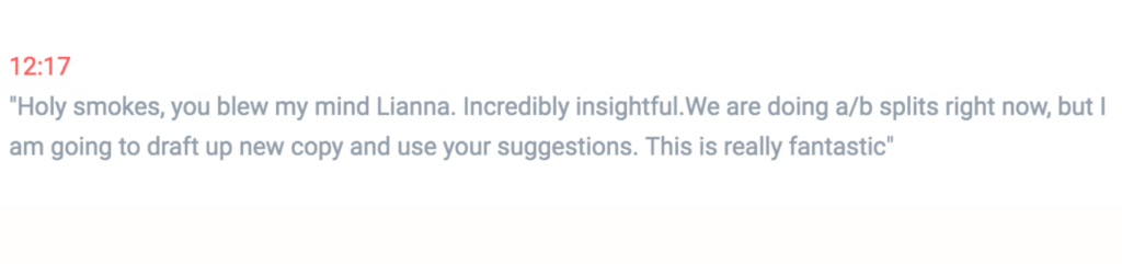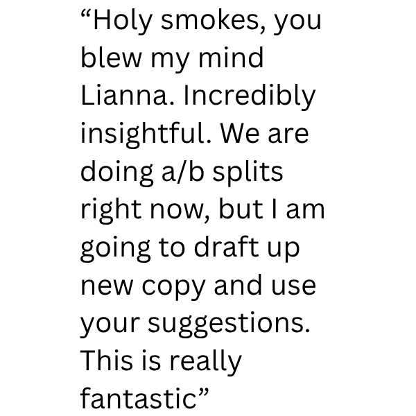 “You can just tell Lianna’s brain was made for helping improve copywriting. She’s thorough, thoughtful and considers how each phrase can be tweaked to impact the target audience in the way you want. Do yourself the favor of using her perspective and save yourself hours.