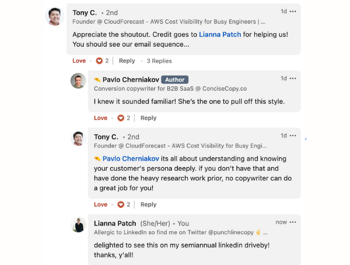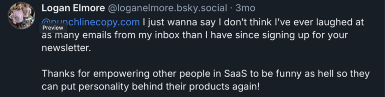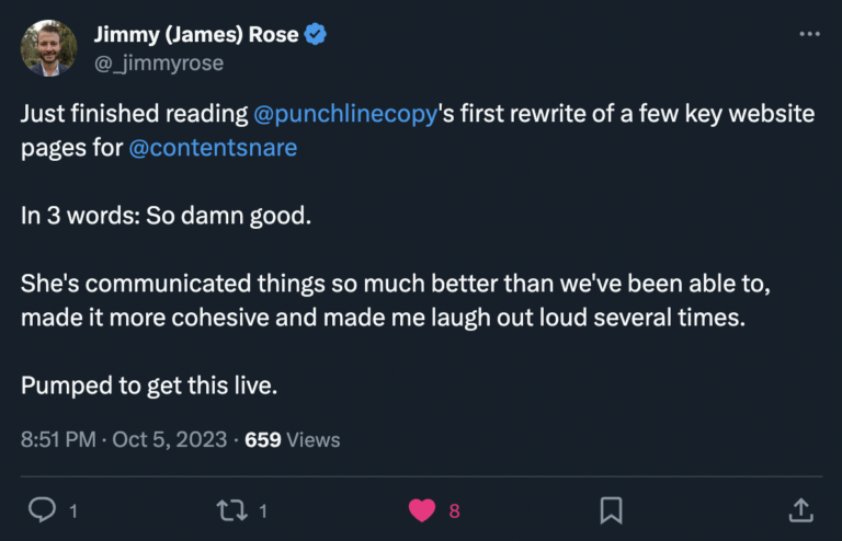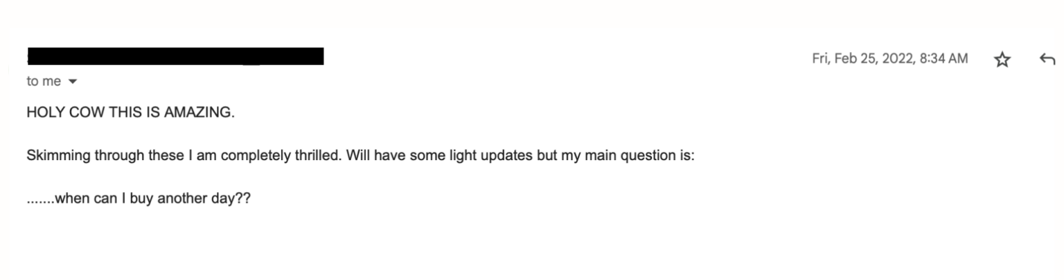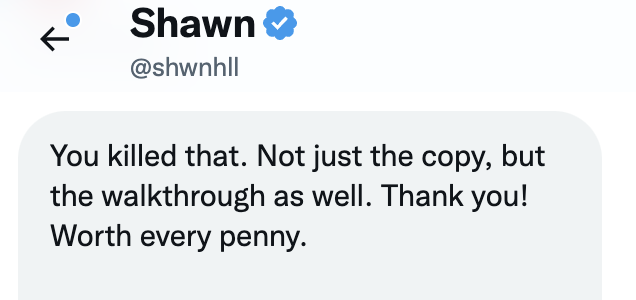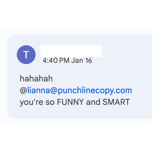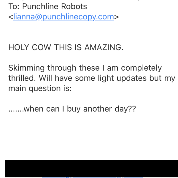 “@punchlinecopy!!!! I want to publicly say you’re a genius. I bought your day, and am blown away by the quality and quantity of what you accomplished.”