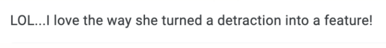 “I often hesitate to buy courses because I don’t always learn something new. This was a whole different experience and I learned a lot. Not just about how to be funny, but what my style of comedy is, when I’m comfortable being funny or not, and how to make things giggle worthy. Folks don’t have to laugh out loud at my jokes. Snickering is perfectly fine too.”