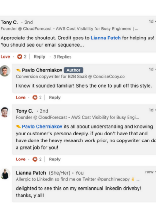 Her results speak for themselves. Lianna is a terrific writer – and maybe the only copywriter I’ve seen blend snarky humor and conversion copywriting principles. She’s all about squeezing the most out of every word on the page. Naturally, it doesn’t hurt that she has an awesome cat and a wicked singing voice. But even without those, I’d still hire Lianna time after time.”